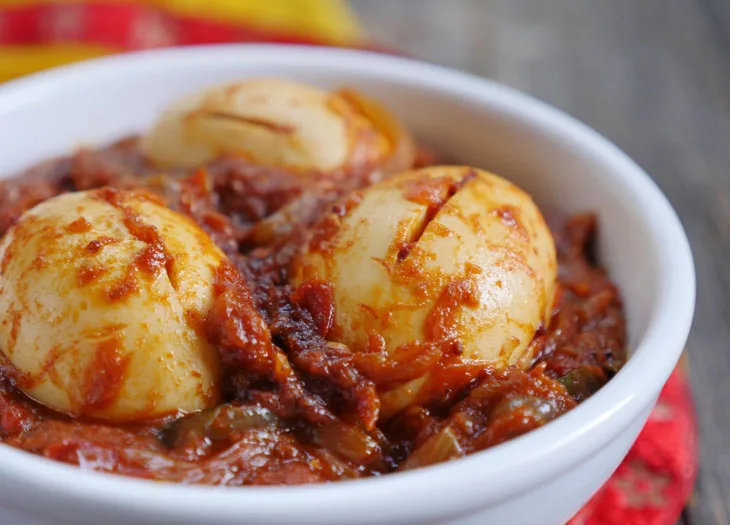 സവാള വഴറ്റുക, ഇളം ബ്രൌണ് നിറമാകുമ്പോള് മുളകുപൊടി, മല്ലിപൊടി, മഞ്ഞള്പൊടി ചേര്ത്ത് വഴറ്റുക. പൊടികളുടെ പച്ചച്ചുവ മാറി കഴിഞ്ഞാല് മുട്ടയും, തേങ്ങാപാലും ഉപ്പും ചേര്ത്ത് ചെറുതീയില് തിളപ്പിച്ച് വറ്റിക്കുക. ചാറ് കുറുകുമ്പോള് കറിവേപ്പില ചേര്ക്കാം.