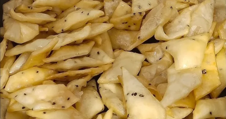 ഒരു വലിയ പാത്രത്തിൽ മൈദ, ജീരകം, കറുത്ത എള്ള്, നെയ്യ്, ഉപ്പ് ഇവ ചേർത്ത് കൈകൊണ്ട് നന്നായി തിരുമ്മി യോജിപ്പിക്കുക. കുറേശ്ശേ വെള്ളമൊഴിച്ചു ചപ്പാത്തി മാവിന്റെ പരുവത്തിൽ കുഴച്ചെടുക്കുക. തയാറാക്കിയ മാവിൽ അല്പം എണ്ണ തടവി അടച്ചുവച്ച് 20 മിനിറ്റ് മാറ്റി വയ്ക്കുക. ശേഷം ചപ്പാത്തി പരത്തുന്നത് പോലെ കനംകുറച്ച് പരത്തി എടുക്കുക. ഒരു ചപ്പാത്തി കല്ല് ചൂടാക്കി തയാറാക്കിയ ചപ്പാത്തി ഓരോ വശവും 10 സെക്കൻഡ് വീതം ചൂടാക്കിയെടുക്കുക. ചൂടാക്കിയ ചപ്പാത്തി ഡയമണ്ട് ഷേപ്പിൽ മുറിച്ചെടുക്കുക. ചീനച്ചട്ടിയിൽ എണ്ണ ചൂടാക്കി തയാറാക്കിയ ഡയമണ്ട് കട്ട് ഇളം ബ്രൗൺ നിറത്തിൽ വറുത്തു കോരുക.