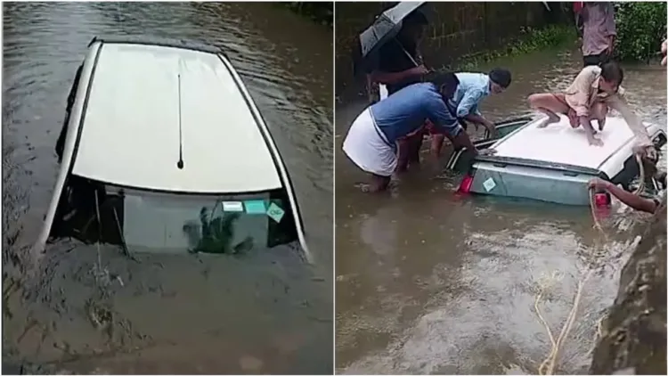 കൊച്ചിയിൽ വെള്ളക്കെട്ട്, പേട്ടയിൽ ഊബര്‍ കാര്‍ കാനയിൽ വീണു