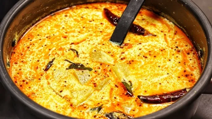 ഇതിലേക്ക് വെളിച്ചെണ്ണ ചൂടാക്കി അഞ്ചാമത്തെ ചേരുവ ചേര്ത്തു മൂപ്പിച്ചു പുളിശ്ശേരിയില് ഒഴിച്ചു വിളമ്പാം.