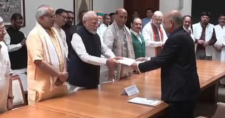 ഉപരാഷ്ട്രപതി തിരഞ്ഞെടുപ്പിനായി എന്ഡിഎ സ്ഥാനാര്ഥി സിപി രാധാകൃഷ്ണന് നാമനിര്ദ്ദേശപത്രിക സമര്പ്പിച്ചു. പ്രധാനമന്ത്രി നരേന്ദ്രമോദി, ആഭ്യന്തരമന്ത്രി അമിത്ഷാ, പ്രതിരോധമന്ത്രി രാജ്നാഥ് സിംഗ് എന്നിവരടക്കം എന്ഡിഎയുടെ 160ഓളം പാര്ലമെന്റ് അംഗങ്ങള് പ്രകടനമായി എത്തിയാണ് വരണാധികാരി രാജ്യസഭാ സെക്രട്ടറി ജനറല് പിസി മോദിക്ക് മുന്നില് നാമനിര്ദ്ദേശപത്രിക സമര്പ്പിച്ചത്. 20 പ്രൊപ്പോസര്മാരുടെയും 20 സെക്കന്ഡര്മാരുടെയും ഒപ്പുകളുള്ള, നാല് സെറ്റ് നാമനിര്ദ്ദേശ പത്രികകള് ആണ് സമര്പ്പിച്ചത്. ആദ്യ സെറ്റ് നാമനിര്ദ്ദേശ പത്രികയില് പ്രധാനമന്ത്രി നരേന്ദ്രമോദിയാണ് മുഖ്യനിര്ദ്ദേശകനായി ഒപ്പ് വച്ചിരിക്കുന്നത്.