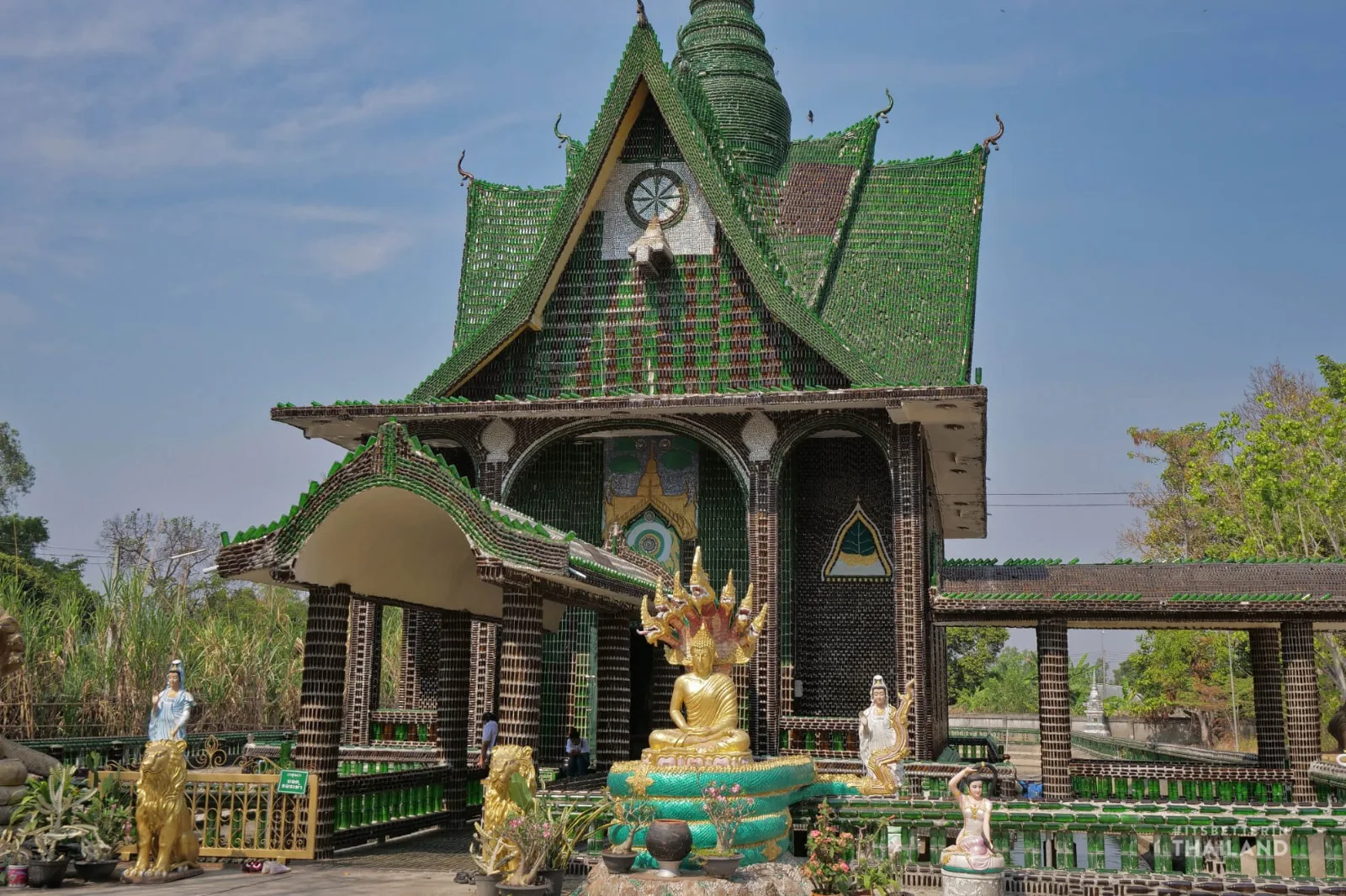 തായ്ലന്ഡിന്റെ മധ്യഭാഗത്തുള്ള സിസാകെറ്റ് പ്രവിശ്യയിലാണ് ഈ അപൂര്വ സുന്ദരമായ ബുദ്ധ ക്ഷേത്രം സ്ഥിതി ചെയ്യുന്നത്. ഈ ക്ഷേത്രത്തിന്റെ നിര്മിതിക്കായി കാലിയായ ബീയർ കുപ്പികളാണ് ഉപയോഗിച്ചിരിക്കുന്നത്. ഈ കുപ്പികളെല്ലാം സമീപ പ്രദേശത്തു നിന്നും ശേഖരിച്ചവയാണ്. അങ്ങനെ ശേഖരിച്ച ബീയർ കുപ്പികള് ഉപയോഗിച്ചാണ് വിശ്രമ മുറികളും പ്രാര്ഥനാ മുറികളും അടങ്ങിയ ക്ഷേത്രം നിര്മിച്ചത്. ഇതിനോട് അനുബന്ധിച്ച് ഒരു ശ്മശാനം വരെ നിര്മ്മിച്ചിട്ടുണ്ട്. അതും ബീയർ കുപ്പികള് കൊണ്ട് തന്നെ!