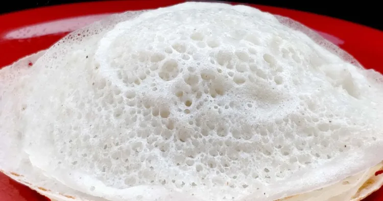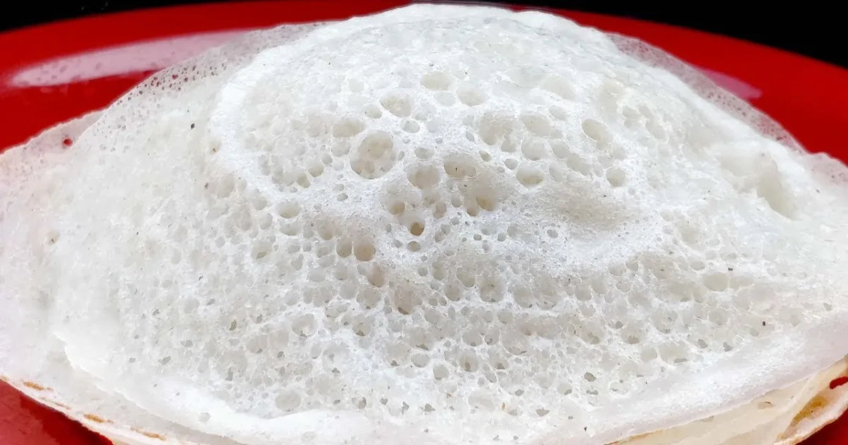 ഒരു കപ്പ് ചെറുചൂട് വെള്ളത്തില് യീസ്റ്റും പഞ്ചസാരയും ചേര്ത്ത് 30 മിനിറ്റ് നേരം വയ്ക്കുക. (വെള്ളത്തിന്റെ ചൂട് കൂടാതിരിക്കാന് ശ്രദ്ധിക്കുക) ടേബിള്സ്പൂണ് അരിപ്പൊടി 2 കപ്പ് വെള്ളത്തില് കലക്കി, തുടര്ച്ചയായി ഇളക്കി 4 മിനിറ്റ് തിളപ്പിച്ച ശേഷം തണുക്കാന് വയ്ക്കുക. തണുത്ത ശേഷം ഈ മിശ്രിതവും, ബാക്കിയുള്ള അരിപ്പൊടിയും, യീസ്റ്റ് ചേര്ത്ത വെള്ളവും, ചിരണ്ടിയ തേങ്ങയും, ഉപ്പും, ഒരു കപ്പ് വെള്ളവും യോജിപ്പിച്ച് നന്നായി അരച്ചെടുക്കുക. മാവ് 8 മണികൂര് ചൂടുള്ള അന്തരീക്ഷത്തില് പുളിയ്ക്കാന് വയ്ക്കുക. ഒരു നോണ്-സ്റ്റിക്ക് പാന് ചൂടാക്കി മാവൊഴിച്ച് പരത്തി (രണ്ട് ദോശയുടെ കനത്തില്) ഇരുവശവും മറിച്ചിട്ട് ചുട്ടെടുക്കുക.