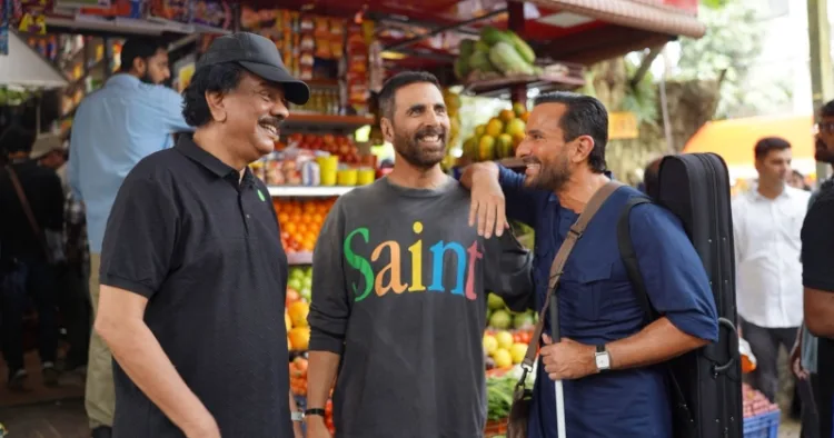 ഇന്ത്യൻ സിനിമാലോകത്തെ തന്നെ ശ്രദ്ധേയ സംവിധായകൻ മലയാളത്തിന്റെ സ്വന്തം പ്രിയദർശന്റെ പുതിയ ബോളിവുഡ് ചിത്രത്തിന് കൊച്ചിയിൽ തുടക്കമായി. പനമ്പിള്ളി നഗറിലെ ഒരു ടീ ഷോപ്പിന് മുമ്പിൽ ചായ കുടിച്ചുകൊണ്ടു നിൽക്കുന്ന സെയ്ഫ് അലി ഖാനും അക്ഷയ് കുമാറും ചേർന്നുള്ള ചിത്രം പങ്കുവെച്ചുകൊണ്ടാണ് പ്രിയദർശൻ സോഷ്യൽ മീഡിയയിലൂടെ പുതിയ ചിത്രത്തെ കുറിച്ച് അറിയിച്ചിരിക്കുന്നത്. കെവിഎൻ പ്രൊഡക്ഷൻസ്, തേസ്പിയൻ ഫിലിംസ് എന്നീ ബാനറുകളിൽ ഒരുങ്ങുന്ന ചിത്രത്തിന് ‘ഹയ്വാൻ’ എന്നാണ് പേര് നൽകിയിരിക്കുന്നത്. ബോളിവുഡിൽ ഒട്ടേറെ ഫൺ എന്റർടെയ്നറുകള് ഒരുക്കിയ പ്രിയന്റെ പുതിയ ചിത്രം ഒരു ഹൈ ഒക്ടെയ്ൻ ത്രില്ലറാണെന്നാണ് സൂചന.