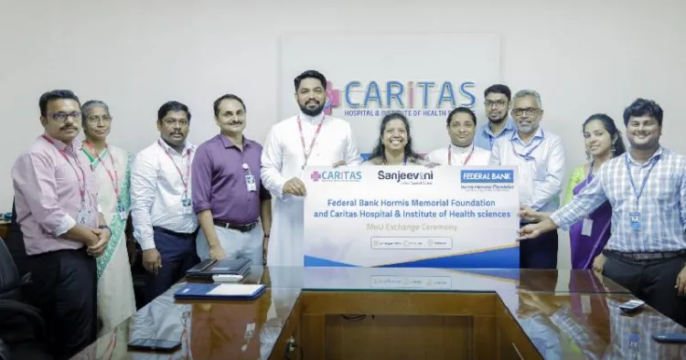 കൊച്ചി: കാന്സര് അവബോധവും ചികിത്സാസഹായവും സംയോജിപ്പിച്ചുകൊണ്ട് നടപ്പിലാക്കുന്ന സിഎസ്ആര് പദ്ധതിയായ സഞ്ജീവനിയ്ക്ക് കീഴില്, കാരിത്താസ് ഹോസ്പിറ്റല് ആന്റ് ഇന്സ്റ്റിറ്റ്യൂട്ട് ഓഫ് ഹെല്ത്ത് സയന്സസുമായി ഫെഡറല് ബാങ്ക് ധാരണാ പത്രം ഒപ്പു വെച്ചു. ഇതുപ്രകാരം, കാരിത്താസ് ആശുപത്രിയുടെ ഗുണഭോക്തൃ പിന്തുണാ ഫണ്ടിനായി ഫെഡറല് ബാങ്ക് ഒരു കോടി രൂപ സംഭാവന നല്കും. ബാങ്കിന്റെ കോട്ടയം സോണല് മേധാവിയും വൈസ് പ്രസിഡന്റുമായ നിഷ കെ ദാസ് കാരിത്താസ് ആശുപത്രി ഡയറക്റും സിഇഒയുമായ ഫാ. ഡോ. ബിനു കുന്നത്തുമായി ഇതുസംബന്ധിച്ച ധാരണാപത്രം കൈമാറി. ബാങ്കിന്റെ കോട്ടയം റീജണല് മേധാവിയും വൈസ് പ്രസിഡന്റുമായ കെ ടി ജയചന്ദ്രന്, കോട്ടയം സോണല് ഓഫിസ് എച്ച്ആര് വിഭാഗം അസി. വൈസ് പ്രസിഡന്റ് നെബിന് വി ജോസ്, ബാങ്കിന്റെ തെള്ളകം ബ്രാഞ്ച് മേധാവിയും സീനിയര് മാനേജറുമായ ആര് അനുലക്ഷ്മി, ജിതിന് ജെയിംസ് എന്നിവര് ചടങ്ങില് സംബന്ധിച്ചു. കാരിത്താസ് ആശുപത്രിയെ പ്രതിനിധീകരിച്ച് സീനിയര് മെഡിക്കല് ഓങ്കോളജി കണ്സള്ട്ടന്റും കാരിത്താസ് കാന്സര് ഇന്സ്റ്റിറ്റ്യൂട്ട് കോഡിനേറ്ററുമായ ഡോ. ബോബന് തോമസ്, ഫിനാന്സ് എച്ച്ഒഡി സിസ്റ്റര് ഡോളി ജോസഫ്, ഫിനാന്സ് എജിഎം ഇ വി ജ്യോതിഷ് കുമാര്, ഓപറേഷന്സ് അസിസ്്റ്റന്റ് മാനേജര് തോമസ് സാമുവല് തുടങ്ങിയവര് പങ്കെടുത്തു.