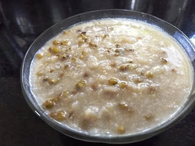 ആദ്യം ചെറുപയർ വെള്ളത്തിൽ കുതിർത്തു വെക്കുക. കഞ്ഞിക്കായി അരി നന്നായി കഴുകി വേവിക്കാൻ വയ്ക്കുക. ഇതിൽ ഉലുവ ജീരകം എന്നിവയും ചേർക്കുക. കുതിർത്തു വെച്ച ചെറുപയർ ഒരു കുക്കറിൽ ഇട്ട് മൂന്ന് വിസിലിൽ വേവിക്കണം. ശേഷം തേങ്ങ, ഇഞ്ചി, വെളുത്തുള്ളി എന്നിവ മിക്സിയിൽ അരച്ചെടുക്കുക. പകുതി വെന്ത അരിയിലേക്ക് ചെറുപയറും അരവും ചേർത്തു നന്നായി വേവിച്ചു എടുക്കുക. അതിൽ ആവശ്യമായ ഉപ്പ് ചേർക്കുക.