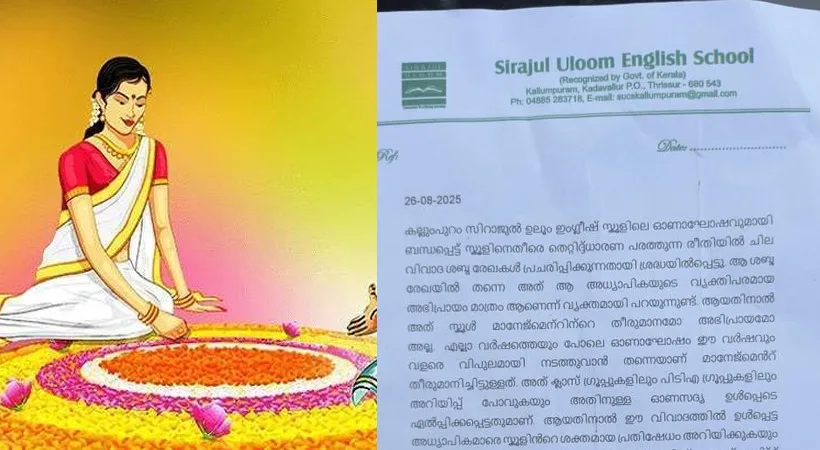 ഓണാഘോഷത്തിൽ മുസ്ലീം വിഭാഗത്തിൽപ്പെട്ട വിദ്യാർഥികൾ പങ്കെടുക്കരുതെന്നാണ് അധ്യാപിക രക്ഷിതാക്കളുടെ വാട്ട്സ്ആപ്പ് ഗ്രൂപ്പിൽ സന്ദേശമയച്ചത്. തൃശ്ശൂർ പെരുമ്പിലാവ് സിറാജുൾ ഉലൂം ഇംഗ്ലീഷ് ഹൈസ്കൂളിൽ ആണ് സംഭവം. ഓണം ഹിന്ദുക്കളുടെ ഉത്സവമാണെന്ന് പറഞ്ഞാണ് അധ്യാപിക വിദ്വേഷ സന്ദേശമയച്ചത്. ഓണവും അതുമായി ബന്ധപ്പെട്ട ആചാരങ്ങളും ഹിന്ദുക്കളുടേതായതിനാൽ അതിനെ മുസ്ലീം വിഭാഗത്തിലുള്ളവർ പ്രോത്സാഹിപ്പിക്കേണ്ടതില്ലെന്നാണ് വിദ്വേഷ സന്ദേശത്തിൽ അധ്യാപിക പറയുന്നത്. സ്കൂളിൽ ഇന്ന് ഓണാഘോഷ പരിപാടികൾ നടക്കാനിരിക്കുന്ന പശ്ചാത്തലത്തിലായിരുന്നു അധ്യാപികയുടെ ഉപദേശം.