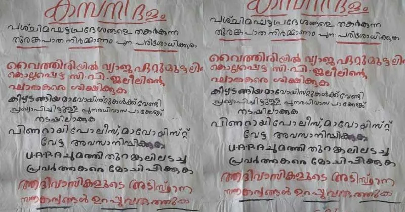 വയനാട് തുരങ്ക പാതയ്‌ക്കെതിരെ കോഴിക്കോട് മാവോയിസ്റ്റ് പോസ്റ്റര്‍