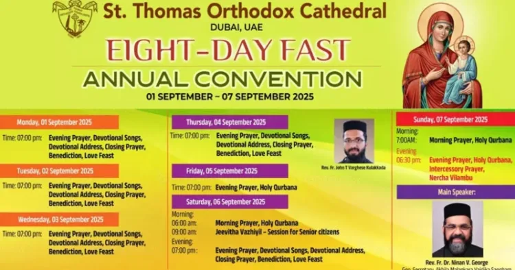 ദുബൈ സെന്റ് തോമസ് ഓർത്തഡോക്സ് കത്തീഡ്രലിൽ സെപ്റ്റംബർ ഒന്നു മുതൽ ഏഴുവരെ എട്ടു നോമ്പാചരണവും വാർഷിക കൺവെൻഷനും നടക്കും.
