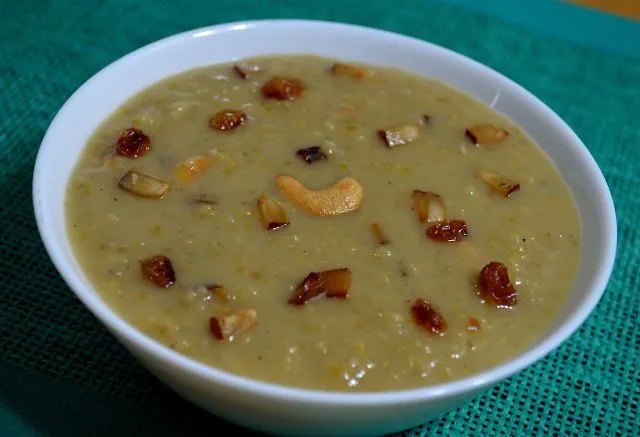 അവസാനം, വറുത്ത അണ്ടിപ്പരിപ്പും ഉണക്ക മുന്തിരിയും ചേർത്ത് അലങ്കരിക്കുക.