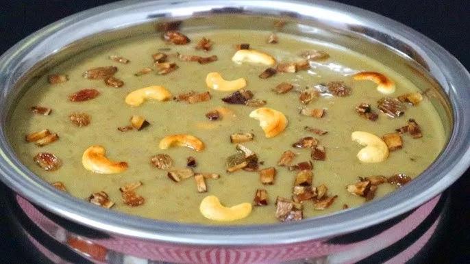 മറ്റൊരു പാനിൽ നെയ്യ് ചൂടാക്കി കശുവണ്ടി, മുന്തിരി, തേങ്ങാ കൊത്തിയത് എന്നിവ വറുത്ത് പായസത്തിൽ ചേർക്കുക.