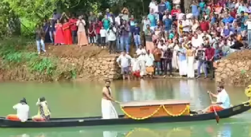 വഞ്ചിപ്പാട്ടിന്റെ അകമ്പടിയോടെ തിരുവോണ തോണിയെ സ്വീകരിക്കാൻ പുലർച്ചെ മുതൽ നൂറുകണക്കിന് ആളുകളാണ് കാത്തുനിന്നത്.