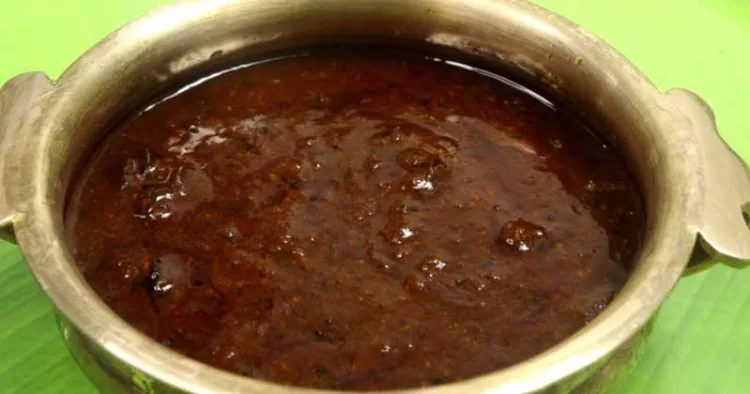 ഒരു പാത്രം അടുപ്പിൽ വെച്ച് ചൂടാകുമ്പോൾ അതിലേക്ക് മൂന്ന് ടേബിൾസ്പൂൺ വെളിച്ചെണ്ണ ഒഴിക്കുക. ഇതിലേയ്ക്ക് 200 ഗ്രാം ഇഞ്ചി വട്ടത്തിൽ ചെറുതായി അരിഞ്ഞതു ചേർത്ത് വേവിക്കാം. ഇതിലേയ്ക്ക് 200 ഗ്രാം ചുവന്നുള്ളി അരിഞ്ഞതും, മൂന്ന് പച്ചമുളക് അരിഞ്ഞതും ചേർത്തിളക്കാം. ബ്രൗൺ നിറമായി വരുമ്പോൾ ഇവ മറ്റൊരു പാത്രത്തിലേയ്ക്കു മാറ്റാം. ഇഞ്ചി വറുത്ത അതേ എണ്ണയിലേയ്ക്ക് കടുക്, വറ്റൽമുളക്, കുറച്ച് കറിവേപ്പില എന്നിവ ചേർത്ത് വറുക്കാം.ഇതിലേക്ക് മുളുകുപൊടി, മഞ്ഞൾപ്പൊടി, ഉലുവപ്പൊടി, കായം എന്നിവ ചേർത്തിളക്കാം.ഒരു നെല്ലിക്ക വലിപ്പത്തിലുള്ള വാളൻപുളി വെള്ളത്തിൽ കുതിർത്തതും, ഒന്നര ടീസ്പൂൺ ശർക്കര പൊടിച്ചതും, ആവശ്യത്തിന് ഉപ്പും ചേർത്ത് തിളപ്പിക്കാം. ഇതിലേയ്ക്ക് വറുത്തു വെച്ചിരിക്കുന്ന ഇഞ്ചിയും ചുവന്നുള്ളിയും അരച്ചു ചേർക്കുക. ശേഷം അടുപ്പിൽ നിന്നും മാറ്റാം.