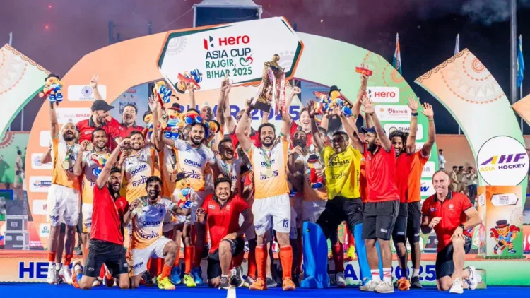 ഏഷ്യാ കപ്പ് പുരുഷ ഹോക്കി കിരീടത്തില് മുത്തമിട്ട് ഇന്ത്യ. ഫൈനലിൽ 4–1 ന് നിലവിലെ ചാമ്പ്യന്മാരായ കൊറിയയെ പരാജയപ്പെടുത്തിയാണ് ഇന്ത്യ ജേതാക്കളായത്. എട്ട് വർഷത്തെ ഇടവേളയ്ക്ക് ശേഷമാണ് ഇന്ത്യ ഏഷ്യാ കപ്പ് കിരീടം ഉയര്ത്തിയത്. ജയത്തോടെ അടുത്ത വർഷത്തെ എഫ്ഐഎച്ച് ലോകകപ്പിന് ഇന്ത്യ യോഗ്യത നേടി. 2026 ഓഗസ്റ്റ് 14 മുതൽ 30 വരെ ബൽജിയത്തിലും നെതർലൻഡ്സിലുമായാണ് പുരുഷ ഹോക്കി ലോകകപ്പ്.