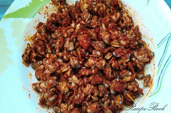 കക്ക ഇറച്ചി 200 gmകക്ക ഇറച്ചി മുകളിലുള്ള എല്ലാം ചേർത്ത് ഇളക്കി 30 മിനിറ്റ് വക്കുക.