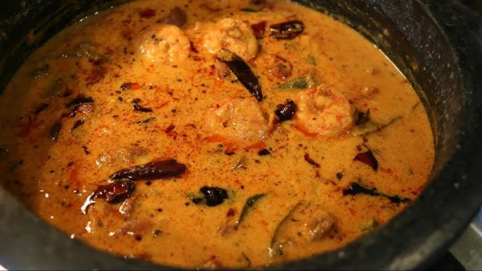 ചേരുവകൾ:- ചെമ്മീൻ കാൽ കിലോ, തേങ്ങാ അര മുറി, മുളകുപൊടി 4 ടേബിൾ സ്പൂൺ, മല്ലിപ്പൊടി 2 ടേബിൾ സ്പൂൺ, മഞ്ഞൾപൊടി കാൽ ടീസ്പൂൺ, ഇഞ്ചി– വെളുത്തുള്ളി പേസ്റ്റ് 20 ഗ്രാം, ഉപ്പു പാകത്തിന്, വാളൻപുളി 100ഗ്രാം, ഉള്ളി 50ഗ്രാം, കുരുമുളകുപൊടി 20 ഗ്രാം.