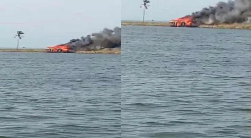 STORY HIGHLIGHT : Houseboat catches fire in Alappuzha