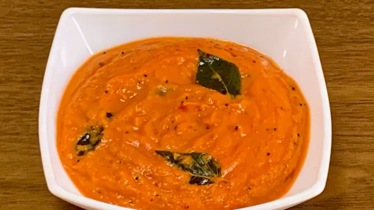 ഒരു പാനിൽ കുറച്ച് എണ്ണ ചൂടാക്കി തക്കാളി, വെളുത്തുള്ളി, ഉണക്കമുളക് എന്നിവ ചേർത്ത് നന്നായി വഴറ്റുക. തക്കാളി മൃദുവായി വരണം.