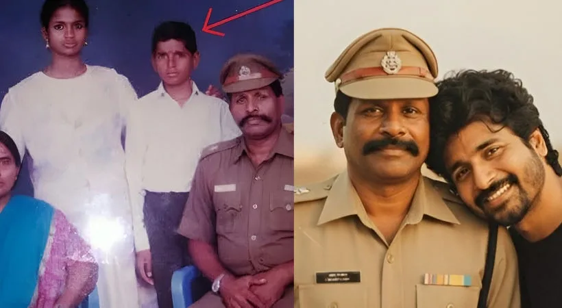 പോലീസ് യൂണിഫോമിൽ നിൽക്കുന്ന അച്ഛനെ താൻ കെട്ടിപ്പുണർന്ന് നിൽക്കുന്ന ചിത്രം പങ്കുവെച്ച താരം ഒപ്പം വികാരനിര്ഭരമായൊരു ക്യാപ്ഷനും ഒപ്പം ചേർത്തിരുന്നു. “എന്റെ സ്വപ്ന ലോകത്തിൽ” എന്നാണ് ചിത്രത്തിനൊപ്പം താരം നൽകിയ ക്യാപ്ഷൻ. ശിവകാർത്തികേയന്റെ പിതാവ് ജി. ദോസ് തിരുച്ചിയിൽ ജയിൽ സുപ്രണ്ടൻഡൻഡ് ആയി സേവനമനുഷ്ഠിക്കുമ്പോഴാണ് മരണമടയുന്നത്. അച്ഛന്റെ വേർപാട് അന്ന് 17 കാരനായ തന്നെ കടുത്ത ഡിപ്രഷനിലേയ്ക്ക് തള്ളി വിട്ടിരുന്നു എന്ന് താരം പലപ്പോഴും പറയാറുണ്ട്.