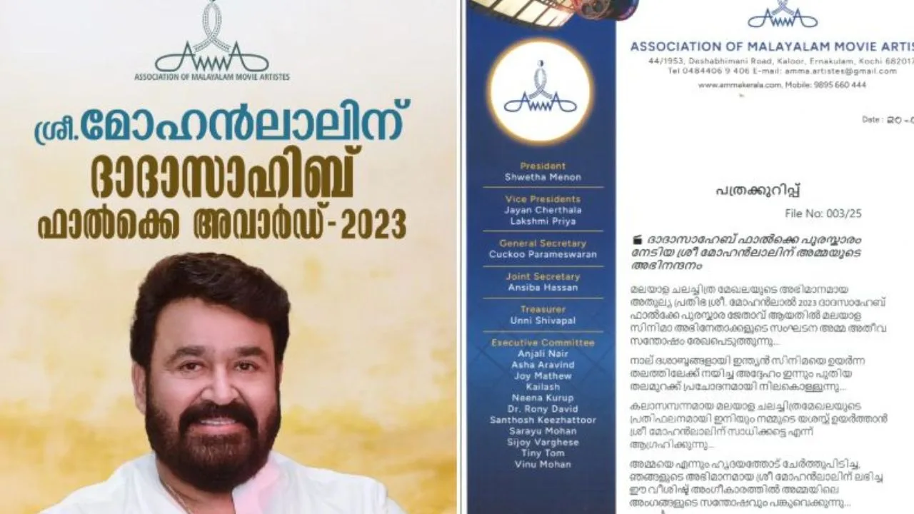 STORY HIGHLIGHT :  ‘AMMA’ organization on Mohanlal’s Dadasaheb Phalke Award win