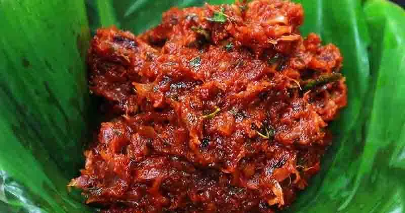 ആദ്യം ഒരു ചുവടു കട്ടിയുള്ള ഒരു പാത്രം സ്റ്റൗവിൽ വച്ച് ചൂടായി വരുമ്പോൾ അതിലേക്ക് ആവശ്യത്തിന് എണ്ണ ഒഴിച്ച് കൊടുക്കുക. എണ്ണ ചൂടായി വരുമ്പോൾ അതിലേക്ക് ചെറിയ ഉള്ളി ചേർത്ത് വഴറ്റുക. അതിലേക്ക് കറിവേപ്പിലയും പുളിയും ചേര്ത്തു നന്നായി വഴറ്റിയെടുക്കുക. ഇത് നന്നായി ചൂടാകുമ്പോൾ അര ടേബിൾ സ്പൂൺ വെളിച്ചെണ്ണ ഒഴിച്ച് വറ്റൽ മുളക്കിട്ട് വഴറ്റുക. ഉള്ളിയും മുളകും തണുത്തു കഴിയുമ്പോൾ ഇതെല്ലാം കൂടി ഒരു മിക്സിയുടെ ജാറിലേക്കു ഇട്ട് ആവശ്യത്തിന് ഉപ്പും ചേർത്ത് അരച്ചെടുക്കുക.