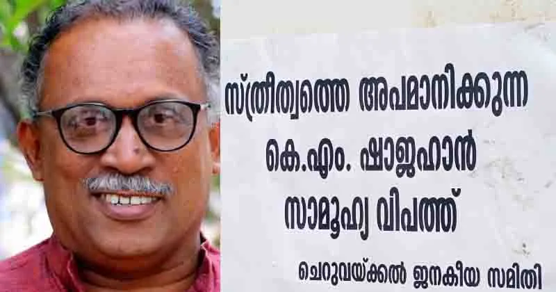 ചെറുവക്കല് പൗര സമിതി എന്ന സംഘടനയുടെ പേരിലാണ് ഫ്ളക്സുകളും പോസ്റ്ററുകളും. സ്ത്രീകള്ക്കെതിരെ അപകീര്ത്തി പരാമര്ശനം നടത്തുന്ന ഷാജഹാന്റെ നാവ് പിഴുതെടുക്കുക എന്നതടക്കം ഉള്ളടക്കമുള്ള പോസ്റ്ററുകളും മറ്റുമാണുള്ളത്.