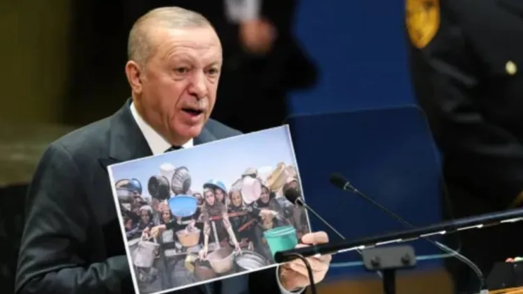 ഗാസയിലെ ആക്രമണങ്ങളുടെ ചിത്രവും എര്ദൊഗാന് പ്രസംഗത്തിനിടെ എടുത്തു കാണിച്ചു. ഗാസയിലെ ദൈനംദിന ജീവിതം ഇങ്ങനെയാണെന്നും എര്ദൊഗാന് പറഞ്ഞു. ഭക്ഷണത്തിന് വേണ്ടി പാത്രങ്ങള് പിടിച്ച് നില്ക്കുന്നവരുടെ ചിത്രവും പോഷാകാഹാരക്കുറവ് നേരിടുന്ന കുട്ടികളുടെ ചിത്രവുമാണ് എര്ദൊഗാന് ഉയര്ത്തിക്കാട്ടിയത്. ‘നിങ്ങളുടെ മനസാക്ഷിയെ മുന്നിര്ത്തി ഇനിയുള്ള ചോദ്യത്തിന് ഉത്തരം നല്കൂ. 2025ലെ ഈ ക്രൂരതയ്ക്ക് ന്യായമായ കാരണമുണ്ടോ? ഈ ചിത്രം ഗാസയെ തുറന്നുകാട്ടുന്നതാണ്. 23 മാസമായി ഇതാണ് ഗാസയില് നടക്കുന്നത്. ഏത് തരത്തിലുള്ള മനുഷ്യര്ക്കാണ് ഇത് സഹിക്കാന് സാധിക്കുക? ഇതിനെതിരെ എങ്ങനെയാണ് ഒരാള്ക്ക് മിണ്ടാതിരിക്കാന് സാധിക്കുക? കുട്ടികള് പട്ടിണി മൂലവും മരുന്നുകളുടെ അഭാവത്തിലും മരിച്ചു വീഴുന്ന ഈ ലോകത്ത് സമാധാനവും ശാന്തിയും ഉണ്ടാകുമോ? അദ്ദേഹം ചോദിച്ചു. ഇസ്രയേല് ഗാസയിലും വെസ്റ്റ് ബാങ്കിലും മാത്രമല്ല ആക്രമണം നടത്തിയതെന്നും സിറിയ, ഇറാന്, യെമന്, ലെബനന് എന്നിവിടങ്ങളും ആക്രമിച്ചിട്ടുണ്ടെന്ന് എര്ദൊഗാന് ചൂണ്ടിക്കാട്ടി.