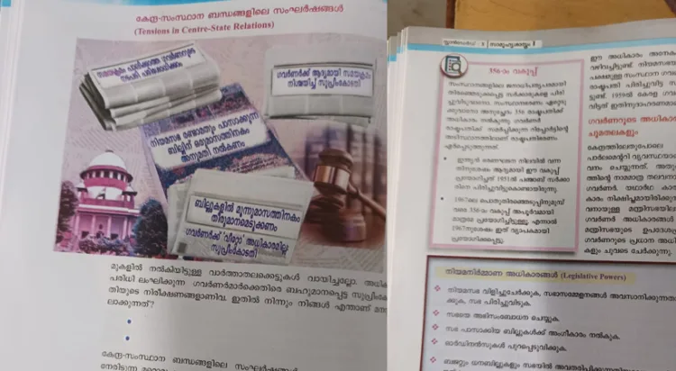 തിരുവനന്തപുരം: ഗവർണറുടെ അധികാര പരിധി സംബന്ധിച്ച പാഠഭാഗം തയ്യാറായി. പത്താം ക്ലാസ് സാമൂഹ്യ ശാസ്ത്രം രണ്ടാം ഭാഗത്തിലാണ് പാഠഭാഗം ഉൾപ്പെടുത്തിയത്. ”ജനാധിപത്യം; ഒരു ഇന്ത്യൻ അനുഭവം” എന്ന പാഠഭാഗത്തിലാണ് ഗവർണറുടെ അധികാര പരിധി വിശദീകരിക്കുന്നത്. ഗവർണർ അധികാരങ്ങൾ നിർവഹിക്കേണ്ടത് മന്ത്രിസഭയുടെ ഉപദേശപ്രകാരമെന്ന് പാഠഭാഗത്തിൽ പറയുന്നു. ഗവർണർ സംസ്ഥാനത്തിൻ്റെ നാമമാത്ര തലവൻ എന്ന് പാഠഭാഗത്തിൽ പറയുന്നു.