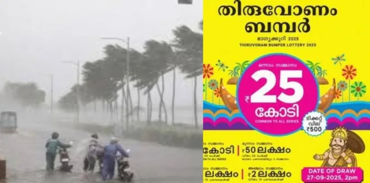 27-09-25 ശനിയാഴ്ച്ച നടത്താന്‍ നിശ്ചയിച്ചിരുന്ന തിരുവോണം ബമ്പര്‍ ഭാഗ്യക്കുറിയുടെ നറുക്കെടുപ്പ് ഒക്ടോബർ 4 – ലേക്ക് മാറ്റിവച്ചു. ചരക്കു സേവന നികുതിയുടെ മാറ്റവുമായി ബന്ധപ്പെട്ടും അപ്രതീക്ഷിതമായ കനത്ത മഴയിലും ടിക്കറ്റുകള്‍ പൂര്‍ണമായി വില്പന നടത്താന്‍ കഴിയാത്ത സാഹചര്യത്തിൽ നറുക്കെടുപ്പ് തീയതി മാറ്റിവയ്ക്കണമെന്ന ഏജന്റുമാരുടെയും വില്പനക്കാരുടെയും അഭ്യര്‍ഥന പരിഗണിച്ചാണ് നറുക്കെടുപ്പ് മാറ്റിവച്ചത്.