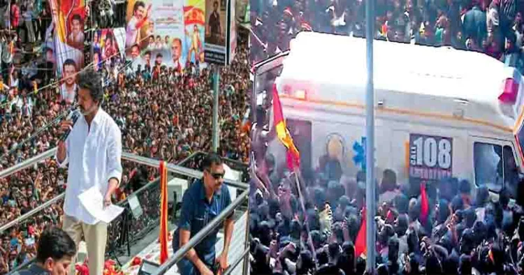 വിജയ്യുടെ റാലി ആവേശക്കടലായി ആരംഭിച്ച് ദുരന്തമായി മാറുകയായിരുന്നു. ഉറ്റവരുടെ ജീവനറ്റ ശരീരങ്ങൾക്കു മുന്നിൽ അലമുറയിട്ടു കരയുന്നവർ, സഹായത്തിനായി കേഴുന്നവർ, ആശുപത്രിയിലേക്ക് പരുക്കേറ്റവരുമായി കുതിക്കുന്ന ആംബുലൻസുകൾ..ഞെട്ടിക്കുന്ന കാഴ്ചകളായിരുന്നു കരൂരിലേത്.