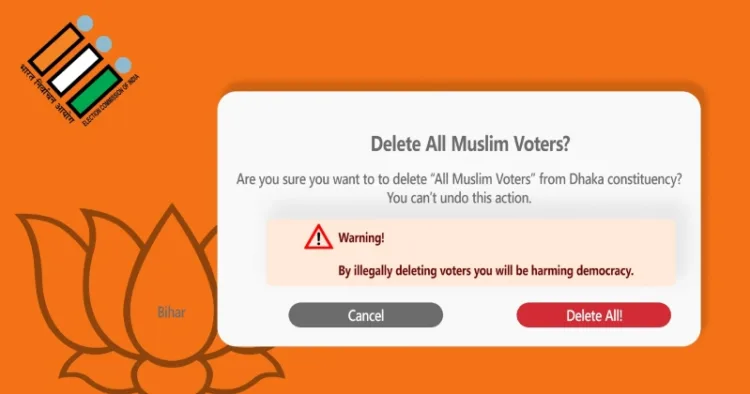 ഇന്ത്യൻ ഭരണഘടന നിലവിൽ വന്നതു മുതൽ രാജ്യമൊട്ടാകെ നിലവിൽ വന്ന ഓരോ പൗരന്റെയും അടിസ്ഥാന അവകാശങ്ങളിൽ ഒന്നാണ് വോട്ടവകാശം.  ബിഹാറിലെ ധക്ക നിയമസഭാ മണ്ഡലത്തിൽ ഏകദേശം 80,000 മുസ്ലിം വോട്ടർമാരെ വോട്ടർ പട്ടികയിൽ നിന്ന് നീക്കം ചെയ്യാൻ ബി.ജെ.പി.യുടെ ആസൂത്രിത നീക്കത്തിന്റെ നേർ ചിത്രമാണ് ചർച്ച ചെയ്യപ്പെടുന്നത്. 78,000ത്തിലധികം മുസ്‌ലിം വോട്ടര്‍മാര്‍ ഇന്ത്യന്‍ പൗരന്മാരല്ല എന്ന് ആരോപിച്ചാണ് ബിജെപി എംഎല്‍എ പവന്‍ കുമാര്‍ ജയ്സ്വാളിന്റെ പേഴ്സണൽ സ്റ്റാഫിന്റെ പേരിലും സംസ്ഥാന കമ്മിറ്റിയുടെ പേരിലും അപേക്ഷ നൽകിയിരിക്കുന്നത്. ‘ദി റിപ്പോർട്ടേഴ്സ് കളക്ടീവ്’ നടത്തിയ അന്വേഷണത്തിലാണ് ഈ വിവരം കണ്ടെത്തിയത്.