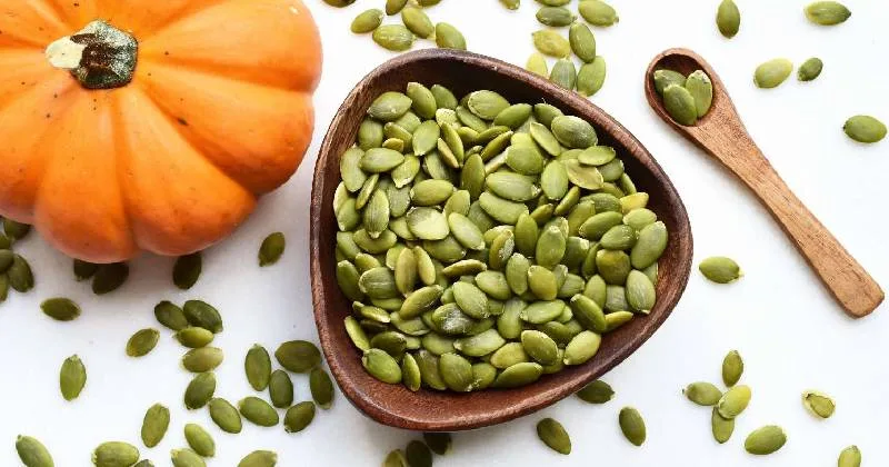 ഒരു പിടി മത്തങ്ങ വിത്തില്‍ 7 ഗ്രാം പ്രൊട്ടീന്‍, 13 ഗ്രാം ഹെല്‍ത്തി ഫാറ്റ്, 37 ശതമാനം ആര്‍ഡിഐ മഗ്‌നീഷ്യം, 1.7 ഗ്രാം ഫൈബര്‍, വിറ്റമിന്‍ ഇ, കാരോടെനോയ്ഡ്സ് എന്നിവയും അടങ്ങിയിട്ടുണ്ട്. ഇത് പ്രായമാകുന്നത് തടയും.