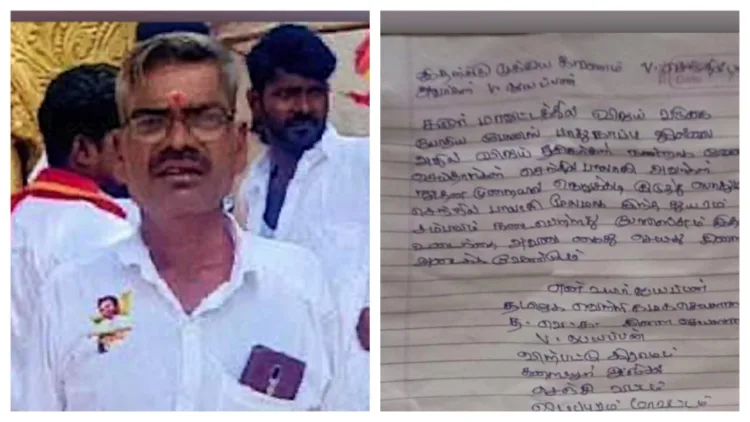 ചെന്നൈ: കരൂർ ദുരന്തത്തിന് പിന്നാലെ ടിവികെ പ്രാദേശിക നേതാവ് ജീവനൊടുക്കി. വിഴുപ്പുറത്ത് ബ്രാഞ്ച് സെക്രട്ടറി ആയ വി.അയ്യപ്പൻ (50) ആണ് ആത്മഹത്യ ചെയ്തത്. ആത്മഹത്യാകുറിപ്പിൽ മുൻമന്ത്രിയും ഡിഎംകെ നേതാവുമായ സെന്തിൽ ബാലാജിക്കെതിരെ പരാമർശമുണ്ട്. ബാലാജിയുടെ സമ്മർദം കാരണം കരൂരിലെ പരിപാടിക്ക് സുരക്ഷയൊരുക്കിയില്ലെന്നാണ് ആരോപണം. ദിവസവേതനക്കാരനായ അയ്യപ്പൻ മുൻപ് വിജയ് ആരാധകകൂട്ടായ്മയുടെ ഭാരവാഹി ആയിരുന്നു. ടിവിയിലെ വാർത്തകൾ കണ്ട് അയ്യപ്പൻ അസ്വസ്ഥൻ ആയിരുന്നതായി കുടുംബം വ്യക്തമാക്കുന്നു. അയ്യപ്പന്റെ ഫോൺ പൊലീസ് പിടിച്ചെടുത്തിട്ടുണ്ട്.