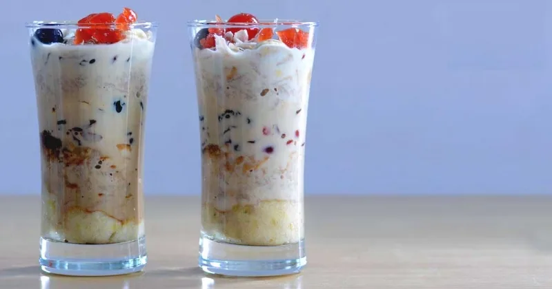 പാലില് പഞ്ചസാര ചേര്ത്ത് യോജിപ്പിക്കുക. പഴം ഉടച്ച് ഒരു ഗ്ലാസ്സിലേക്ക് ഇടുക. അതിന് മുകളിലായി വറുത്ത അവല്, കപ്പലണ്ടി, ബിസ്ക്കറ്റ് പൊടിച്ചതും ചേര്ക്കുക. അതിന് മുകളില് പാല് ഒഴിച്ചു കൊടുക്കുക. വീണ്ടും എല്ലാ ചേരുവകളും ലയറായി ഗ്ലാസിലേക്ക് ഇടുക. ഒരു സ്പൂണ് കൊണ്ട് ഇളക്കി യോജിപ്പിച്ച ശേഷം കഴിക്കാം.