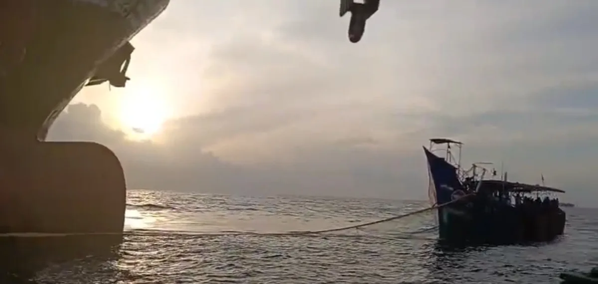 ബുധനാഴ്ച വൈകിട്ട് അഞ്ചുമണിക്കു ശേഷമായിരുന്നു സംഭവം. നിര്ത്തിയിട്ട് മീന് പിടിക്കുകയായിരുന്ന വള്ളത്തിലേക്ക് കപ്പല് വന്നിടിക്കുകയായിരുന്നു. എന്നാല് മത്സ്യത്തൊഴിലാളികള്ക്ക് ആര്ക്കും പരിക്കേറ്റിട്ടില്ല. വള്ളത്തിന് സാരമായ കേടുപാടുകളുണ്ടായിട്ടുണ്ട്. പള്ളിത്തൊഴു സ്വദേശി സ്റ്റാലിന് എന്നയാളുടെ ഉടമസ്ഥതയിലുള്ള വള്ളത്തിലാണ് കപ്പല് വന്നിടിച്ചത്. കപ്പലിനെതിരെ പരാതി നല്കുമെന്ന് തൊഴിലാളികള് അറിയിച്ചു.
