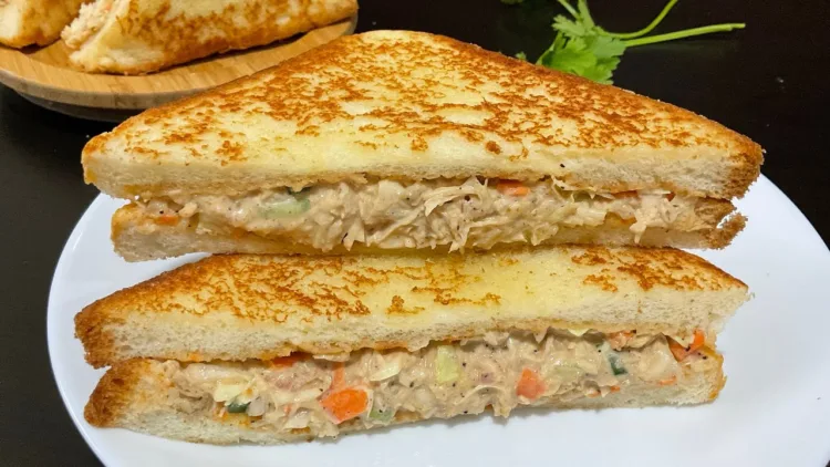 ബ്രെഡ് സ്ലൈസിൽ ബട്ടർ പുരട്ടി, അതിനു മുകളിൽ ഈ ചിക്കൻ കൂട്ട് വെച്ച് മറ്റൊരു ബ്രെഡ് സ്ലൈസ് കൊണ്ട് അടയ്ക്കുക.