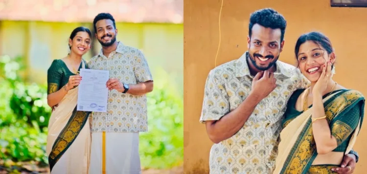 അഭിഷേകിനെ ടാഗ് ചെയ്ത് ‘3/10/ 2025/’ എന്ന തീയതിയോടെയാണ് ചിത്രങ്ങള് പങ്കുവെച്ചത്. പച്ചയില് കസവ് പ്രിന്റോടുകൂടിയ കരയുള്ള ഓഫ് വൈറ്റ് സാരിയാണ് ചിത്രങ്ങളില് ആര്യയുടെ വേഷം. പച്ച നിറത്തിലുള്ള ബ്ലൗസാണ് ഇതിനൊപ്പം ധരിച്ചിരിക്കുന്നത്. ലളിതമായ ആഭരണങ്ങളും ആര്യ അണിഞ്ഞിട്ടുണ്ട്. മുണ്ടും ഫ്ളോറല് പ്രിന്റുള്ള ഷര്ട്ടുമാണ് അഭിഷേകിന്റെ വേഷം. ഒട്ടേറപ്പേര് നവദമ്പതികള്ക്ക് ആശംസകളുമായെത്തി.