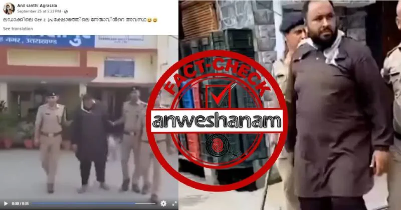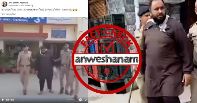 ഇതിനിടെ, ലഡാക്ക് സംഘർഷവുമായി ബന്ധപ്പെടുത്തി ഒരു വീഡിയോ സമൂഹമാധ്യമങ്ങളിൽ പ്രചരിക്കുന്നുണ്ട്. പ്രക്ഷോഭ സൂത്രധാരനെ പോലീസ് പിടികൂടി എന്ന തരത്തിലാണ് ഇത് പ്രചരിക്കുന്നത്. എന്നാൽ ഈ പ്രചാരണം തെറ്റിദ്ധരിപ്പിക്കുന്നതാണെന്ന് പരിശോധനയിൽ നിന്ന് കണ്ടെത്തി.