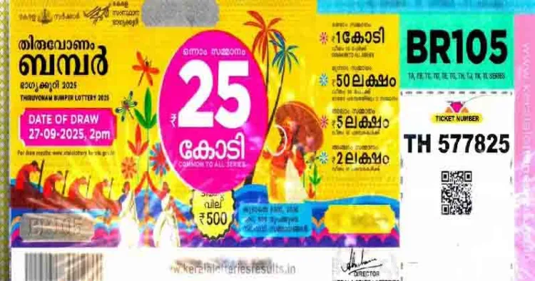 സംസ്ഥാന ഭാഗ്യക്കുറി വകുപ്പിന്റെ ഈ വര്ഷത്തെ ഓണം ബമ്പര് നറുക്കെടുത്തു. TH 577825 നമ്പര് ടിക്കറ്റിനാണ് സമ്മാനം. ഉച്ചയ്ക്ക് ഒരുമണിയോടെ തിരുവനന്തപുരം ഗോർഖി ഭവനിൽ വച്ചായിരുന്നു നറുക്കെടുപ്പ് നടന്നത്.