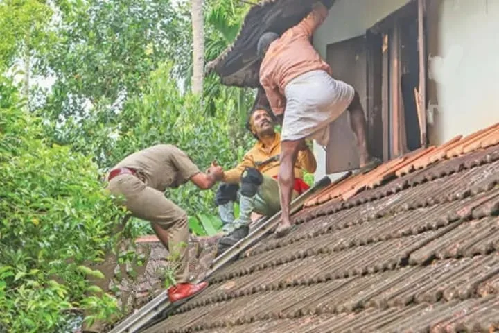 അപ്പോഴേക്കും വിഷ്ണു കത്തിയുമായി വീടിന്റെ മച്ചില് കയറിയിരുന്നു. പോലീസ് തിടുക്കപ്പെട്ട് നടപടിക്കൊരുങ്ങിയില്ല. ഏറെനേരം അനുനയിപ്പിക്കാന് ശ്രമിച്ചിട്ടും വഴങ്ങാതിരുന്നതോടെ പോലീസും നാട്ടുകാരും ചേര്ന്ന് ഇയാളെ കീഴ്പ്പെടുത്താന് തീരുമാനിച്ചു.