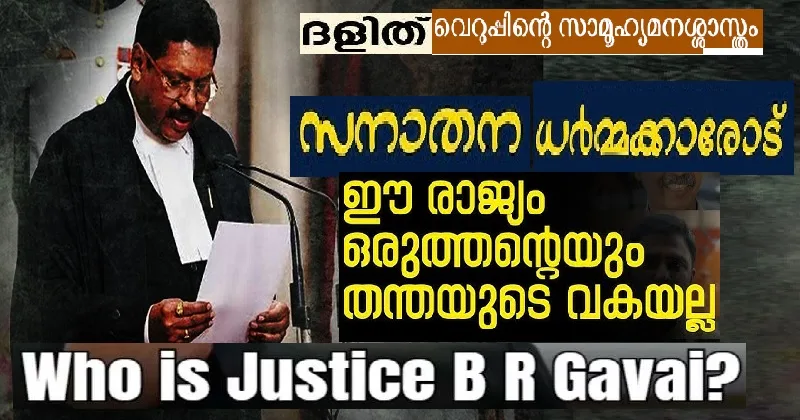 രാജ്യത്തെ പരമോന്നത നീതി പീഠത്തില് ഒരു ദളിതന് ഇരിക്കുന്നതും, ആ കോര്ട്ടില് ഒരു ക്ഷേത്രത്തിന്റെ കേസ് പരിഗണിക്കുന്നതും, സനാതന ധര്മ്മത്തെ ദളിതന് ചോദ്യം ചെയ്യുന്നതുമാണ് ജാതിയില് കൂടിയ, ഹിന്ദുത്വ അജണ്ടയില് മാത്രം കോടതിയെയും നീതി പീഠത്തിലെ ജസ്റ്റിസിനെയും കണ്ട, അഭിഭാഷകന് ദഹിക്കാതെ വന്നത്. ദളിതനല്ലാത്ത, മറ്റു പിന്നാക്ക വിഭാഗത്തില് നിന്നുമല്ലാത്ത ഏതൊരു ജസ്റ്റിസാണെങ്കിലും അഭിഭാഷകനില് നിന്നും ഇത്തരം നീച പ്രവൃത്തി ഉണ്ടാകില്ല എന്നതാണ് വസ്തുത. കാരണം, ദളിതനെയും-മറ്റു പിന്നാക്കക്കാരെയും സനാതന ധര്മ്മ പ്രകാരം തൊട്ടുകൂടാത്തവനവും തീണ്ടിക്കൂടാത്തവനുമാക്കി വെച്ചിരിക്കുകയാണ്.