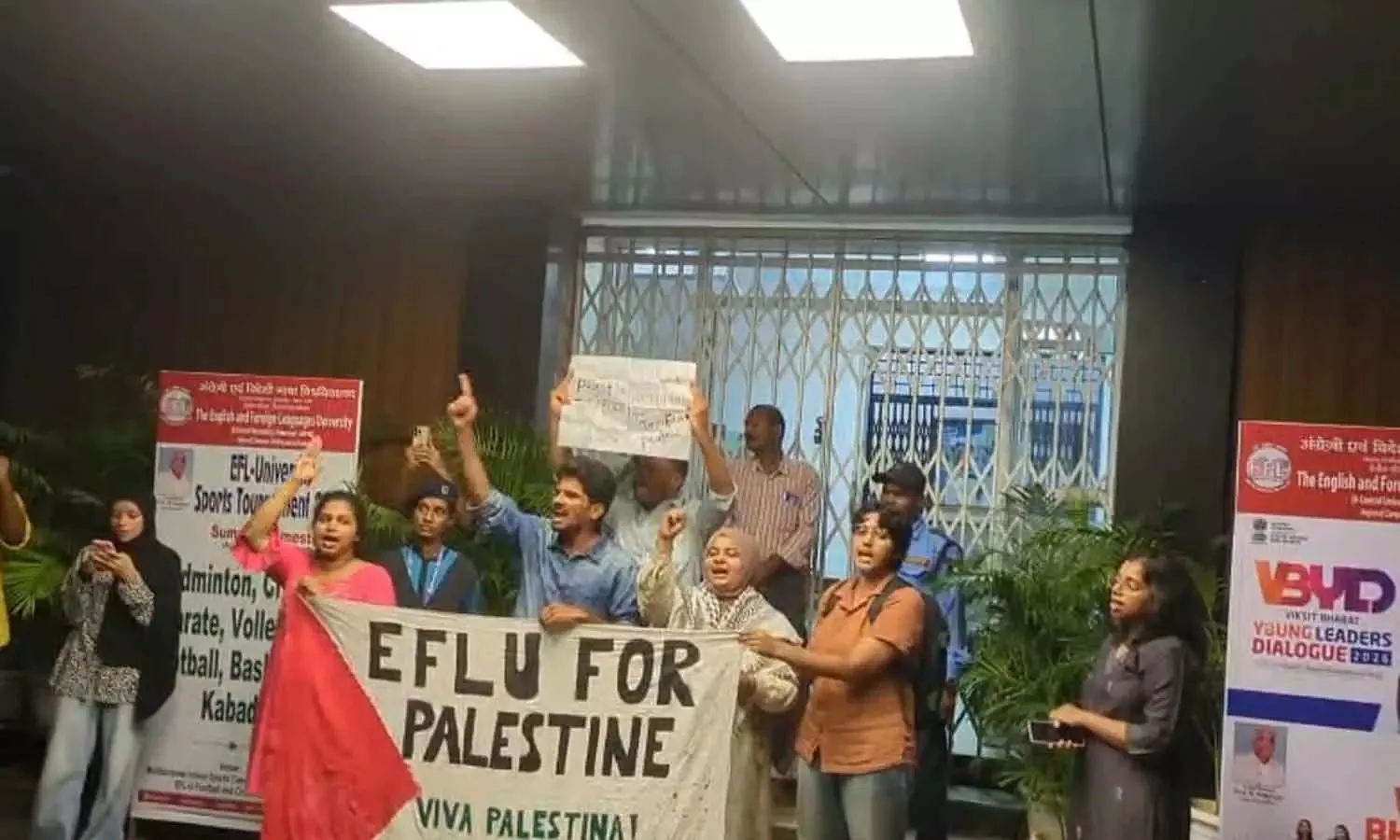 ഹൈദരാബാദ്: ഇഫ്ളു യൂണിവേഴ്സിറ്റിയിൽ സംഘര്ഷം. വിദ്യാർത്ഥി യൂണിയൻ സംഘടിപ്പിച്ച ഫലസ്തീൻ ഐക്യദാർഢ്യം പരിപാടിക്കിടെയാണ് സംഘര്ഷം അരങ്ങേറിയത്. എബിവിപി പ്രവര്ത്തകരാണ് സംഘര്ഷത്തിന് തുടക്കമിട്ടതെന്ന് വിദ്യാര്ഥികള് പറഞ്ഞു.