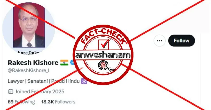 “നിർദ്ദിഷ്ട കമ്മ്യൂണിറ്റി നോട്ട്, രാകേഷ് കിഷോർ_എൽ സുപ്രീം കോടതി അഭിഭാഷകന്റേതല്ലെന്ന് കൃത്യമായി ഫ്ലാഗ് ചെയ്യുന്നു, എന്റെ തിരയലുകളെ അടിസ്ഥാനമാക്കി അദ്ദേഹത്തിന് വെരിഫൈഡ് എക്സ് അക്കൗണ്ട് ഇല്ല. ഇത് ആൾമാറാട്ട സാധ്യതയെ സൂചിപ്പിക്കുന്നു, 2025-ൽ അക്കൗണ്ടിന്റെ മുൻ ഹാൻഡിൽ ഇന്ത്യൻ ആർമി_എൽജി എന്നതിലേക്ക് മാറ്റിയതുമായി ഇത് യോജിക്കുന്നു.