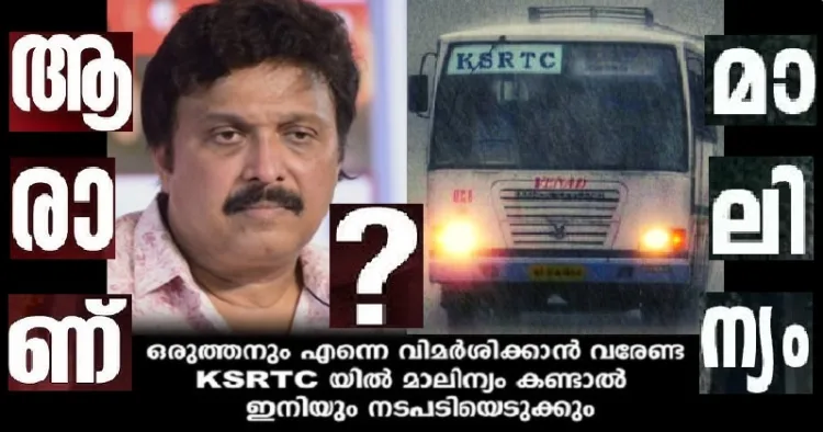 ‘KSRTCയില് മാലിന്യം എറിഞ്ഞുകൊണ്ട് ഒരുത്തനെയും ഇരുത്തില്ല. അത് ചോദിക്കും. ഇനിയും ചോദിക്കും. ഏതവന് പറഞ്ഞാലും ചോദിക്കും.’ ഇതാണ് ഗതാഗതമന്ത്രിയുടെ നിലപാട്. പ്ലാസ്റ്റിക് കുപ്പിയല്ല, ബസിനുള്ളില് ചണംകെട്ടിയുള്ള തുണി വിരിക്കുന്നതും പാടില്ലെന്ന് ഉത്തരവുണ്ട്. KSRTC എംഡിയുടെ രണ്ടു്തരവുകളുണ്ട്. അത് മറച്ചു വെച്ചിട്ടാണ് ഇത്തരം പരിപാടികള്. തെച്ചിക്കോട്ട് രാമചന്ദ്രനെ കണ്ടാലും KSRTC ബസ് കണ്ടാലും സോഷ്യല് മീഡിയയില് ആഴക്കാര് കൂടും. അതുകൊണ്ട് നല്ല ആള്ക്കാരെയും ജനസ്സമ്മതരെയും കണ്ടാല് അതിനു താഴെ വന്ന് മോശം പറയുന്നവര് നിര്ത്തുന്നതാണ് നല്ലത്. ശമ്പളം ഒന്നാം തീയതി കൊടുത്തപ്പോള് വിമര്ശിച്ചവരെ കണ്ടില്ലല്ലോ. ഓണത്തിന് ബോണസും അലവന്സും കൊടുത്തപ്പോള് വിമര്ശകരെ കണ്ടില്ലല്ലോ. ഇനിയും ഇടപെടും.