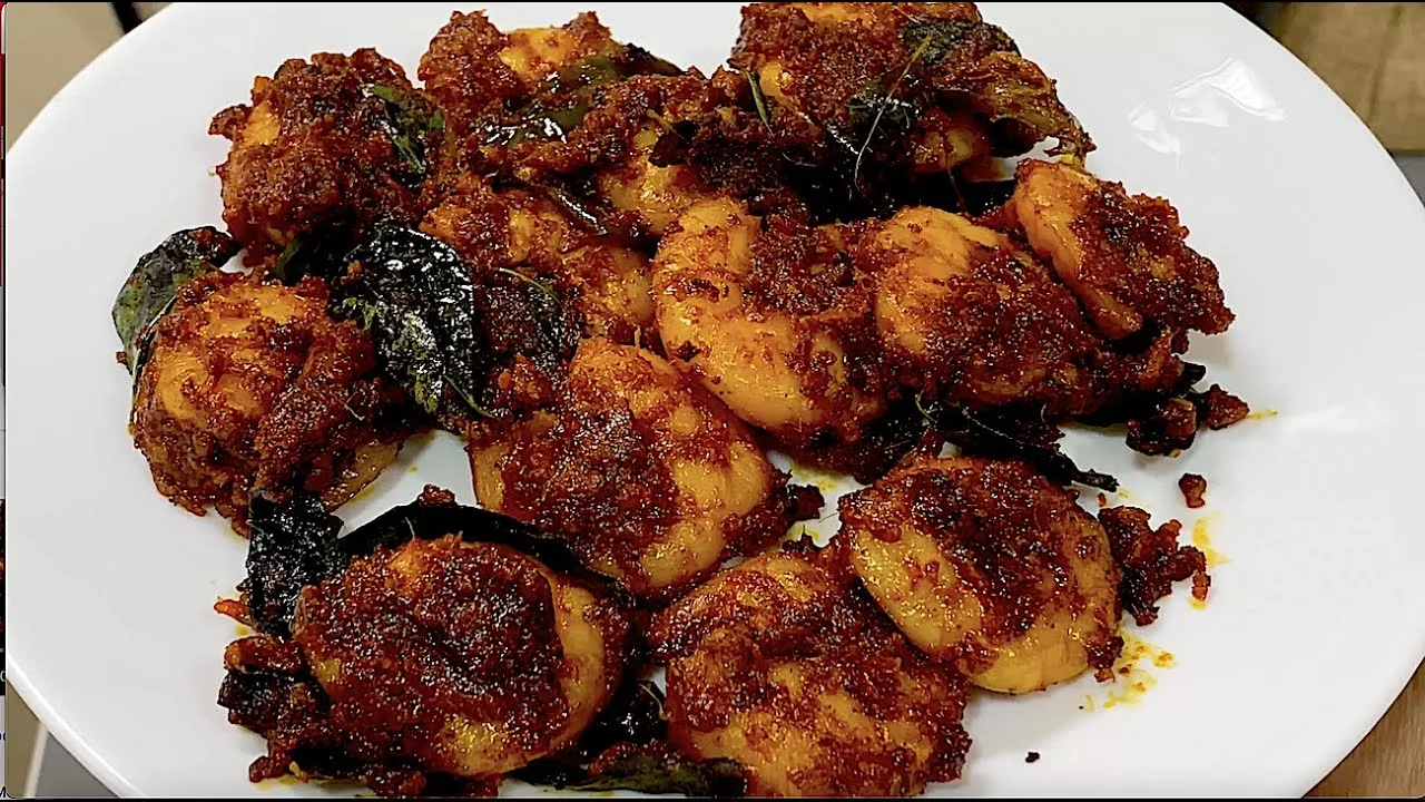 ഒരു പാനിൽ വെളിച്ചെണ്ണ ഒഴിച്ച് ചൂടാവുമ്പോൾ കറിവേപ്പില ഇട്ട് അതിലേക്ക് മസാല പുരട്ടിയ ചെമ്മീൻ ഇട്ട് ഫ്രൈ ചെയ്യുക.ഒരു സൈഡ് റെഡിയായി വരുമ്പോൾ തിരിച്ചിട്ട് രണ്ടു സൈഡും മൊരിഞ്ഞു തക്കാളി കഷ്ണങ്ങളെല്ലാം മൂത്തു ചെമ്മീനിൽ ചേർന്ന് വന്നാൽ അടിപൊളി ചെമ്മീൻ ഫ്രൈ റെഡി