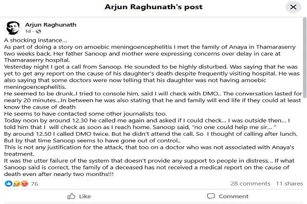അനയയുടെ ചികിത്സയുമായി ബന്ധമില്ലാത്ത ഒരു ഡോക്ടറുടെ നേരെയുള്ള ആക്രമണത്തിന് ഇത് ഒരു ന്യായീകരണവുമല്ല.