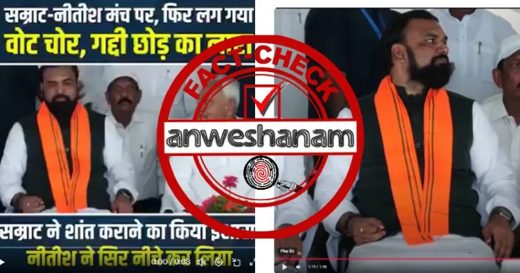 ബീഹാർ മുഖ്യമന്ത്രി നിതീഷ് കുമാറിനും ഉപമുഖ്യമന്ത്രി സാമ്രാട്ട് ചൗധരിക്കുമെതിരെ ആളുകൾ “വോട്ട് ചോർ, ഗഡ്ഡി ഛോഡ്” എന്ന മുദ്രാവാക്യം വിളിച്ചുവെന്ന വാദം തെറ്റാണ്. വീഡിയോ ഡിജിറ്റലായി കൃത്രിമം കാണിച്ചിരിക്കുന്നു, സസാറാം പരിപാടിയിൽ അത്തരം മുദ്രാവാക്യങ്ങൾ ഉയർത്തിയിട്ടില്ല.