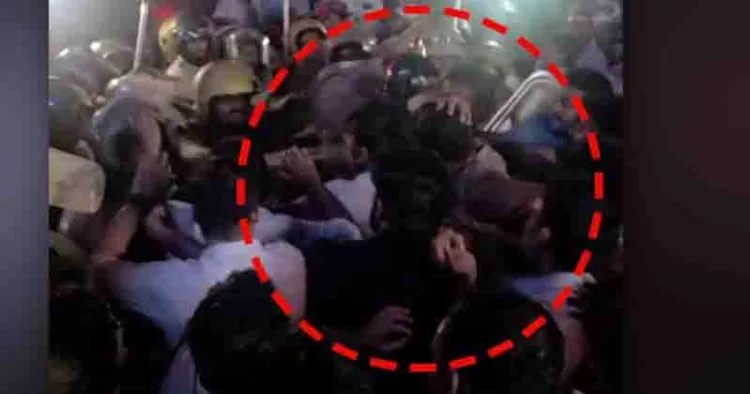 പൊലീസ് ബാറ്റൺ ഉപയോഗിച്ച് നേരിട്ട് തലയ്ക്ക് അടിക്കുന്നത് ദൃശ്യങ്ങളിൽ വ്യക്തമാണ്. ഈ അടിയിലാണ് ഷാഫി പറമ്പിലിന്റെ മൂക്കിന് ഗുരുതരമായി പരുക്കേൽക്കുകയും മൂക്കിന്റെ രണ്ട് എല്ലുകൾക്ക് പൊട്ടലേൽക്കുകയും ചെയ്തത്.