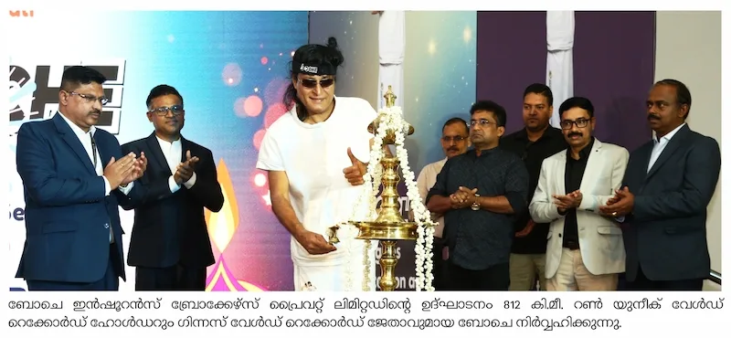 കൊച്ചി: ബോബി ചെമ്മണൂര്‍ ഇന്റര്‍നാഷണല്‍ ഗ്രൂപ്പിന്റെ ഏറ്റവും പുതിയ സംരഭമായ ബോചെ ഇന്‍ഷൂറന്‍സ് ലോഞ്ച് ചെയ്തു. താങ്ങാനാവുന്ന നിരക്കില്‍ സമഗ്രമായ കവറേജ് ഓപ്ഷനുകള്‍ നല്‍കിക്കൊണ്ട് എല്ലാവര്‍ക്കും ഇന്‍ഷൂറന്‍സ് പരിരക്ഷ ലഭ്യമാക്കുക എന്നതാണ് ബോചെ ഇന്‍ഷൂറന്‍സിന്റെ ലക്ഷ്യം. കൊച്ചി റിനൈ ഹോട്ടലില്‍ സംഘടിപ്പിച്ച ചടങ്ങില്‍ 812 കി.മീ. റണ്‍ യുനീക് വേള്‍ഡ് റെക്കോര്‍ഡ് ഹോള്‍ഡറും ഗിന്നസ് വേള്‍ഡ് റെക്കോര്‍ഡ് ജേതാവുമായ ബോചെ ഉദ്ഘാടനം നിര്‍വ്വഹിച്ചു. ലൈഫ് ഇന്‍ഷൂറന്‍സ്, മെഡിക്കല്‍ ഇന്‍ഷൂറന്‍സ്, വാഹന ഇന്‍ഷൂറന്‍സ് എന്നിങ്ങനെ ഇന്‍ഷൂറന്‍സ് മേഖലയിലെ എല്ലാ സേവനങ്ങളും ഇന്ത്യയിലെ പ്രമുഖ ഇന്‍ഷൂറന്‍സ്