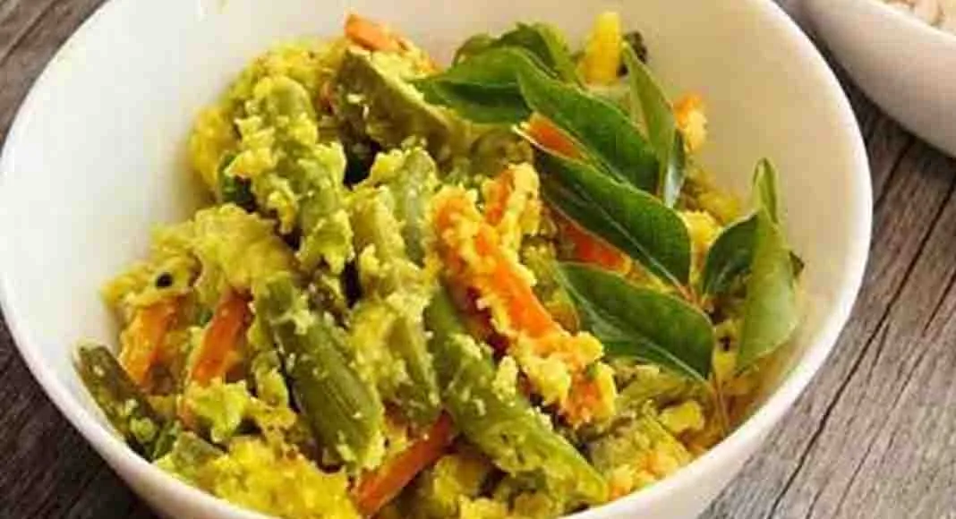 ഈ തേങ്ങ ചട്ടിയിലേക്ക് വിതറുന്നു. ഇത് വീണ്ടും ഇളക്കി വേവിക്കുന്നു. വെന്ത ശേഷം ഇതിനു മുകളിലേക്ക് കറിവേപ്പില വയ്ക്കുന്നു. അല്പ്പം വെളിച്ചെണ്ണ കൂടി ഒഴിച്ചാല് ഈ വിഭവം റെഡി!